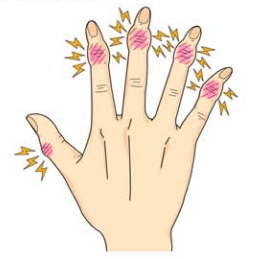 主に手の指の第一関節に出て来やすい症状です。